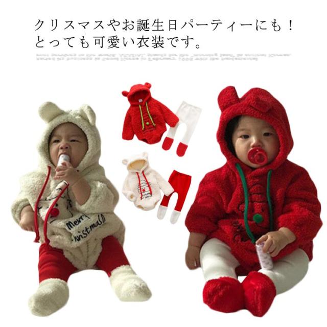 【送料無料】コスプレ クリスマス コスプレ 子供服 ベビー服 2点セット 冬用 ボア もこもこ 厚手 あったか コスチューム 赤ちゃん