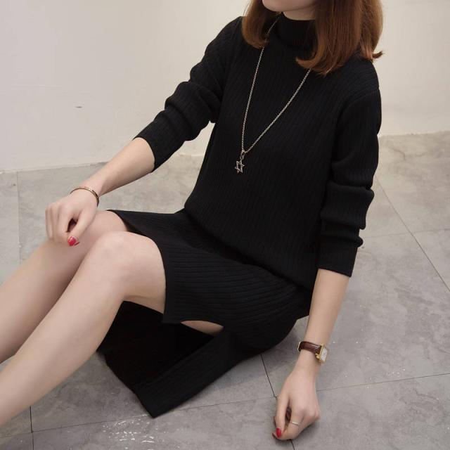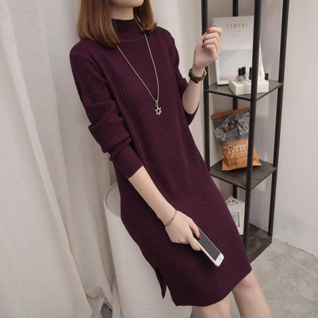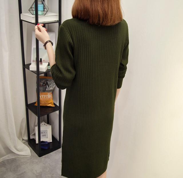 レディース ワンピース ニットワンピース ニット ワンピ ハーフハイネック 膝丈ワンピース リブワンピース 秋冬 リブニット 長袖 カジュアル スリット入り 膝丈 おしゃれ