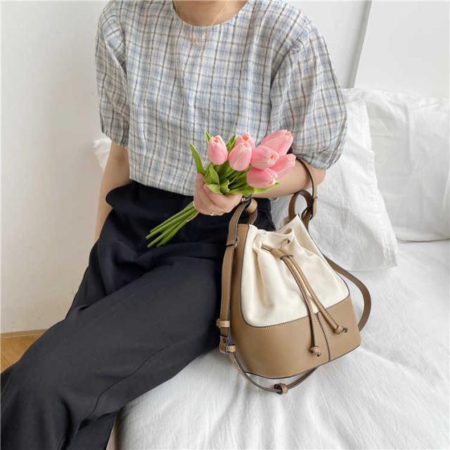 バケットバッグ 巾着バッグ レディース ショルダー トートバッグ バケツ型 キャンバス 本革 巾着 ショルダーバッグ 斜め掛け バッグ 鞄 かわいい おしゃれ 大人 女の子 ギフト