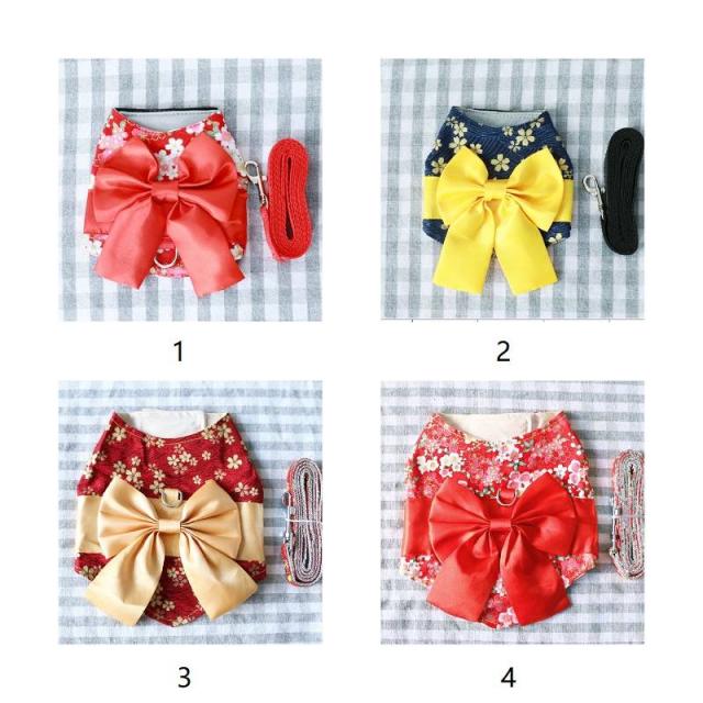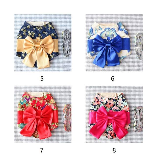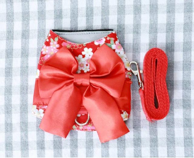 猫 牽引ロープ ペット用品 犬 猫 胸あて式 ベスト型 蝶結び付き 和風 花柄 キャットハーネス 小型犬 ペット 胴輪 ベスト ペットグッズ 散歩 お出かけ 簡単装着 ペット保護