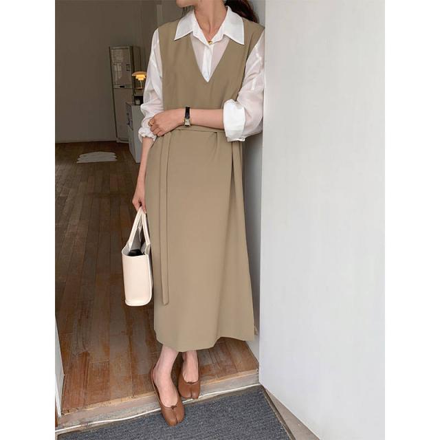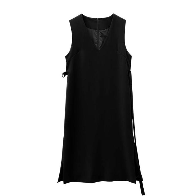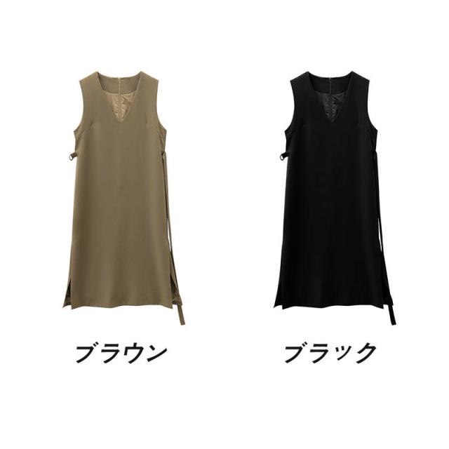 ジャンパースカート レディース サロペット スカート ファッション ロングスカート Vネック Aラインスカート 韓国風 ノースリーブ ワイドスリット 秋冬 大人 女子