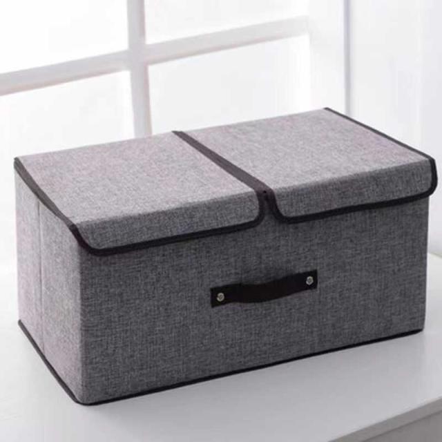 衣類収納ボックス 仕切り衣類収納ボックス 二分け リネン 衣類 収納 ポーチ 布製 大容量 蓋付き 靴下収納 折りたたみ 小物収納