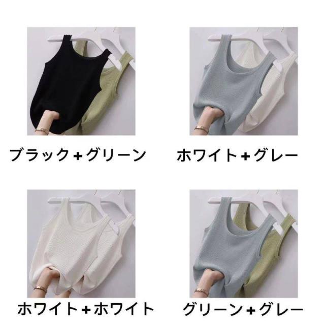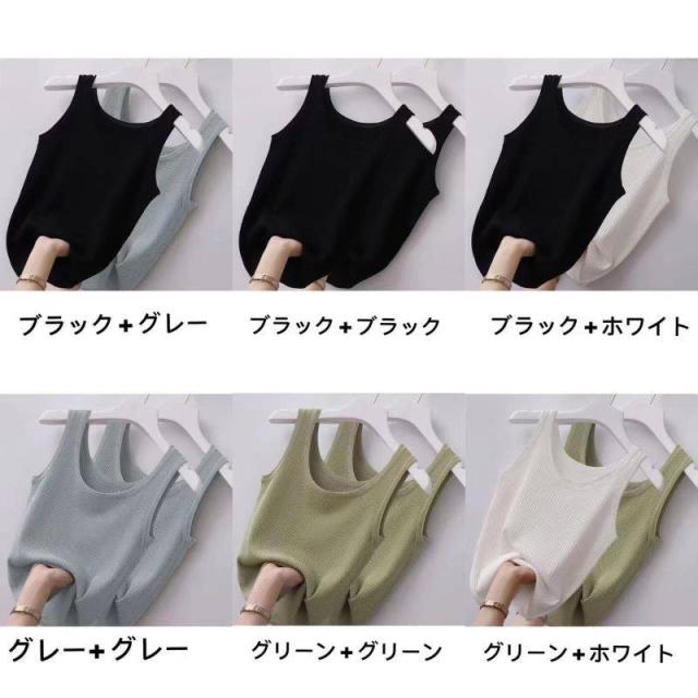 2点セット ラウンドネック タンク タンクトップ レディース ニットトップス インナー キャミ カジュアル きれいめ トレンド 大きいサイズ 送料無料 M-5XL