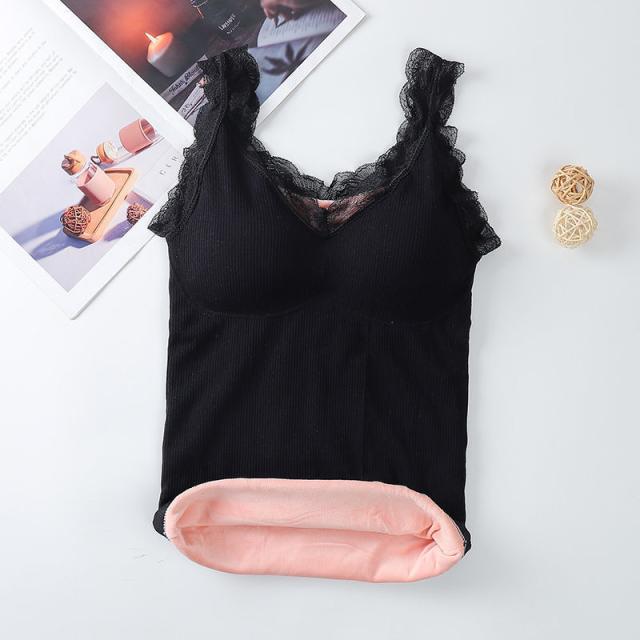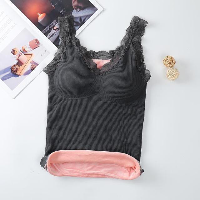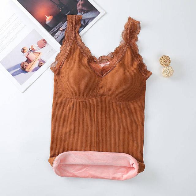 裏起毛 キャミソール コップ付き レース インナー レディース カップ付きインナー ブラトップ ブラック グレー ベージュ ブラウン レッド S M L XL 2XL 送料無料
