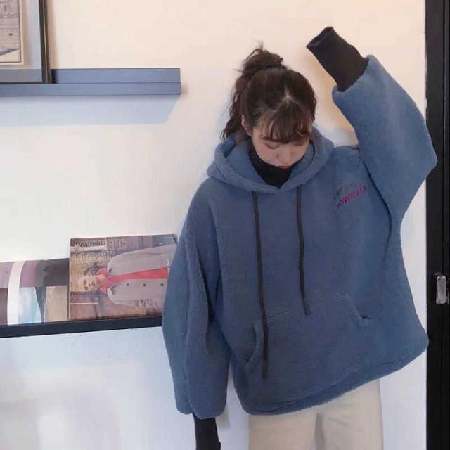パーカー 秋冬 ボアパーカー ボア コート アウター プルオーバー トップス 大きいサイズ レディース フード パーカ トレーナー ドロップショルダー ボアブルゾン 無地 シンプル リブ あったか 防寒 ゆったり 長袖 秋 冬 ブルー ベージュ