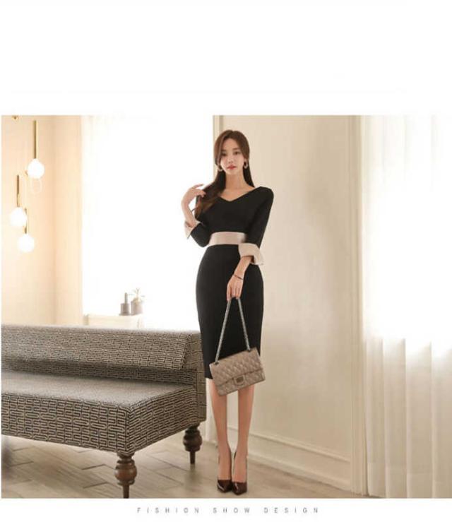 ワンピース 結婚式 ワンピ 長袖 袖あり 膝丈 ひざ丈 大人 スタイル 上品 清楚 きれいめ おしゃれ 細見え ドレス 大きいサイズ タイトワンピース タイトワンピ タイトドレス 30代 40代 韓国服 韓国 服 服装 黒 ブラック 秋 冬 秋冬