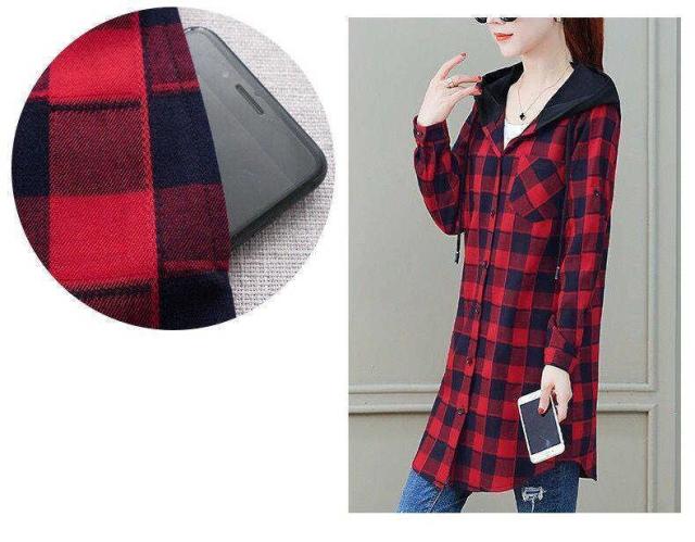 チェック柄 シャツ レディース ネルシャツ トップス シャツ 長袖 チェックシャツ チェックネルシャツ レディース ロング丈 大きいサイズ 秋冬 チェック柄 シャツ ボタン 韓国 裏起毛 フード付き きれいめ レッド ブラック
