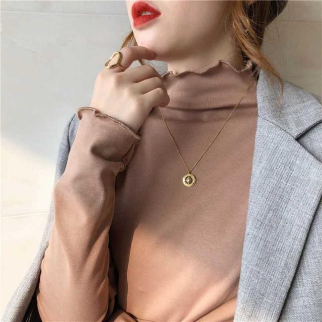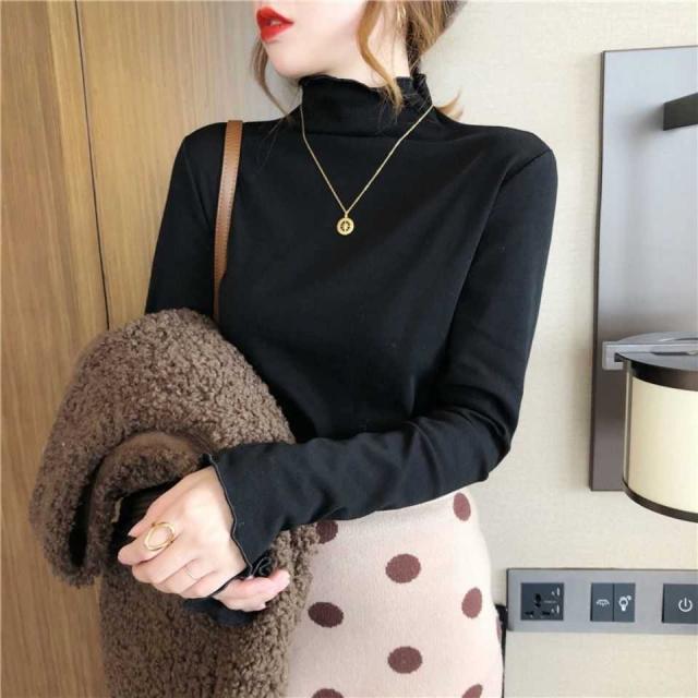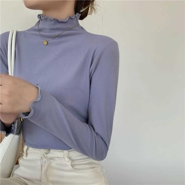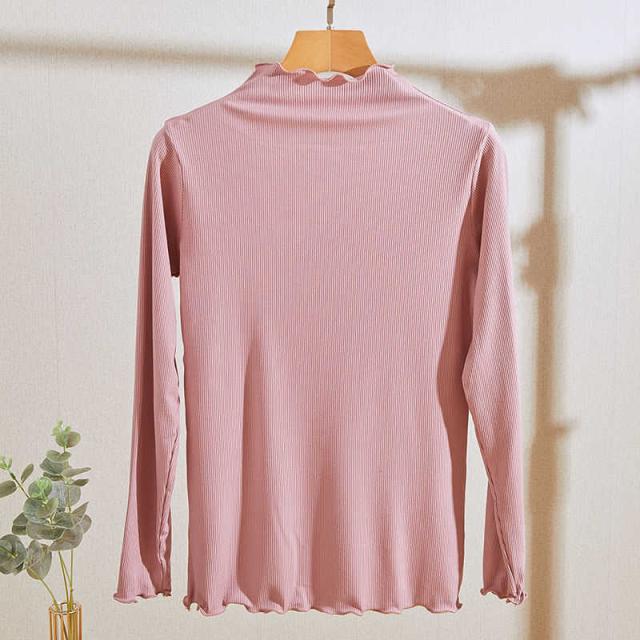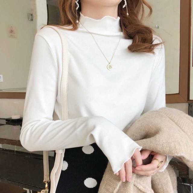 送料無料 インナーシャツ カットソー ハイネック タートルネック 無地 トップス 長袖 Tシャツ ロンt レディース 薄手 タイト フリル レイヤード インナー 暖 発熱 春 秋 冬 フリーサイズ 送料無料