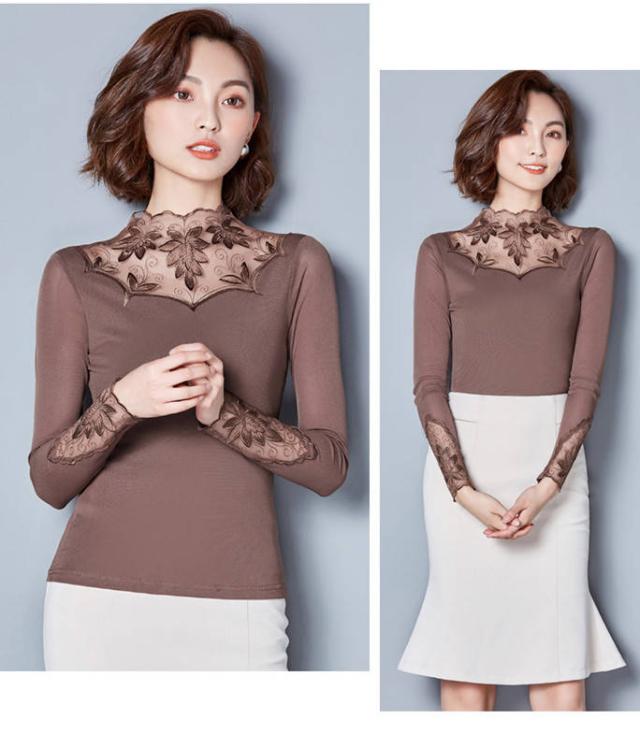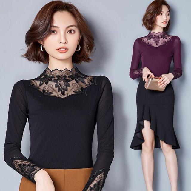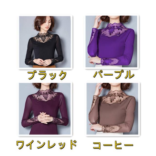 全4色 裏起毛レーストップス カットソー インナー レディース 花柄レース 長袖 レイヤード 肌隠し ハイネック レース切替トップス 通常着 裏起毛カットソー 保温 防寒 あったか 大きいサイズ 重ね着 ルームウェア