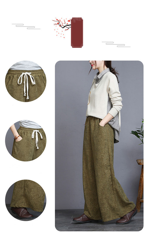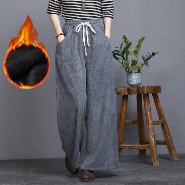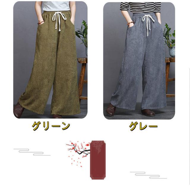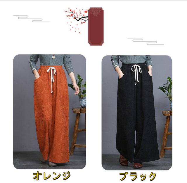 全4色 裏起毛 コーデュロイパンツ ワイドパンツ レディース ボトムス 防寒 ロング パンツ スカート ウエストゴム ルームウェア 暖か 部屋着 体型カバー ゆったり 秋冬 大きいサイズ 自宅
