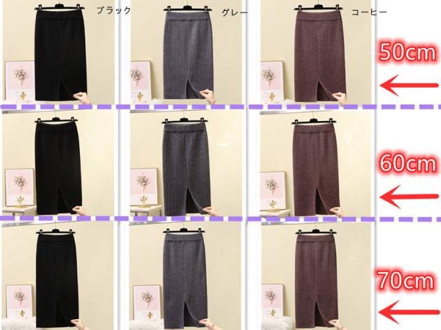 全3色 ニットスカート タイトスカート リブ スリット レディース スカート 大きいサイズ 膝丈 動ける ストレッチ ミモレ丈スカート ボトムズ ひざ丈 ロング丈 秋 春 冬 高見え 上品 通勤 通学