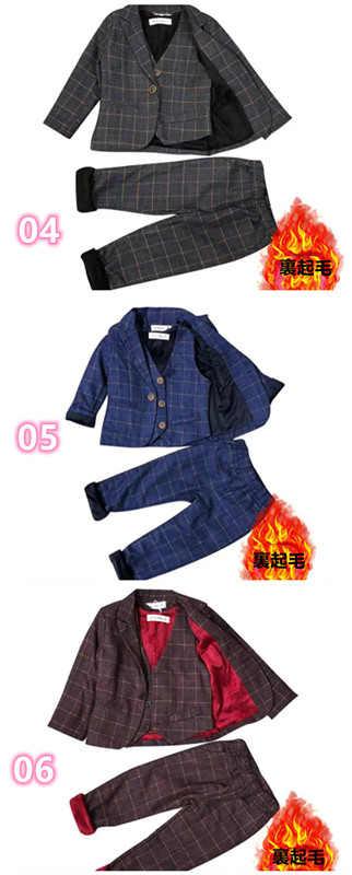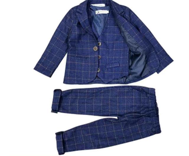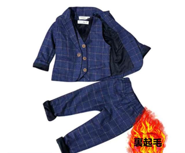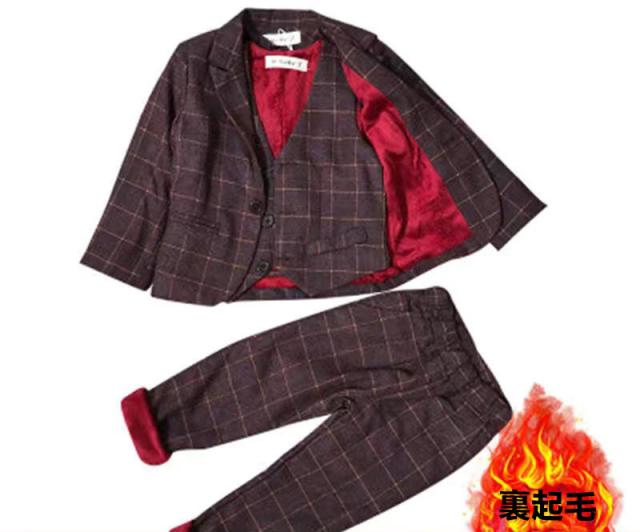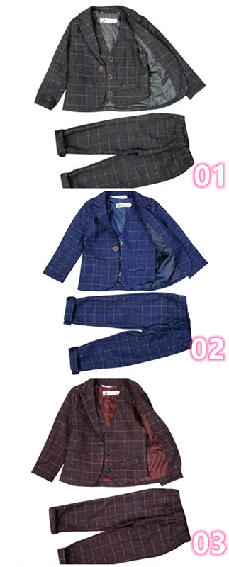 蝶ネクタイ付き 男の子スーツ 子供スーツ 3点セット フォーマル 裏起毛 長袖ジャケット+ベスト+ズボン チェック柄 子供発表会スーツ 紳士服 七五三 キッズ 入学式 誕生日 入園式 結婚式 90cm 100cm 110cm 120cm 130cm 140cm