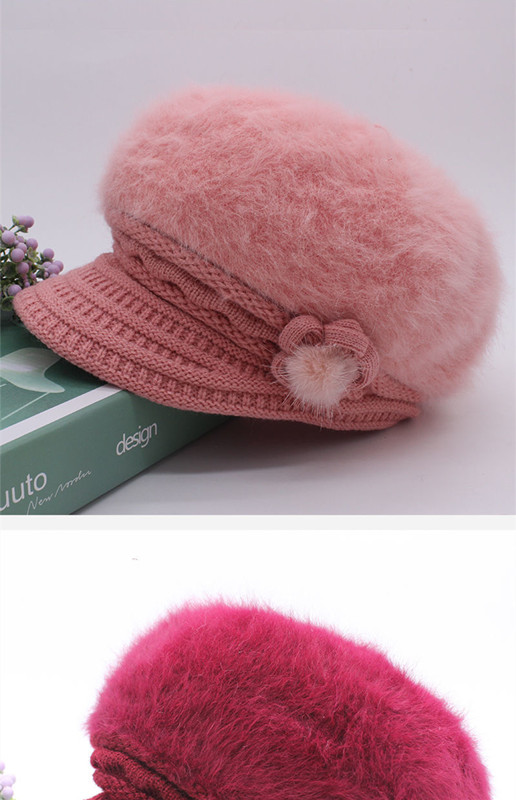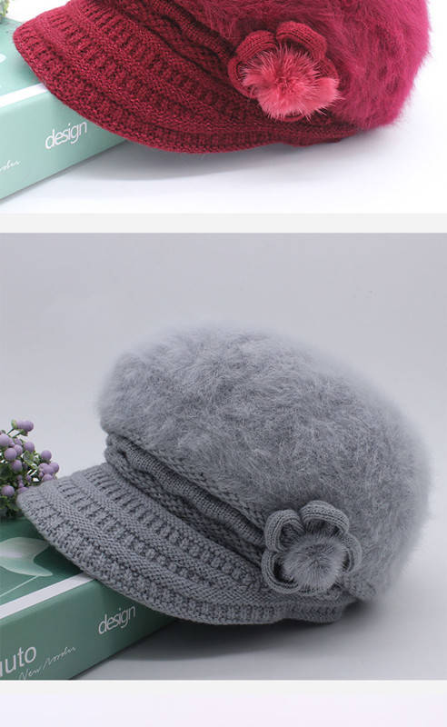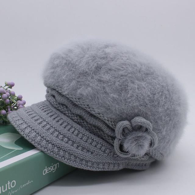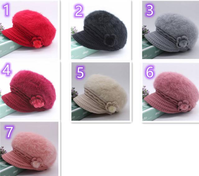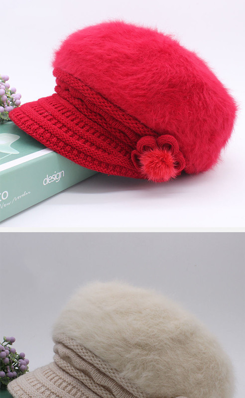 全7色 ニット帽子 キャスケット 裏ボア つば付き レディース 秋冬用 裏起毛 防寒 ニット帽 厚手 お花付き 暖かい 温かい うさぎの毛 ファー 可愛い 上品 女性 旅行 通院
