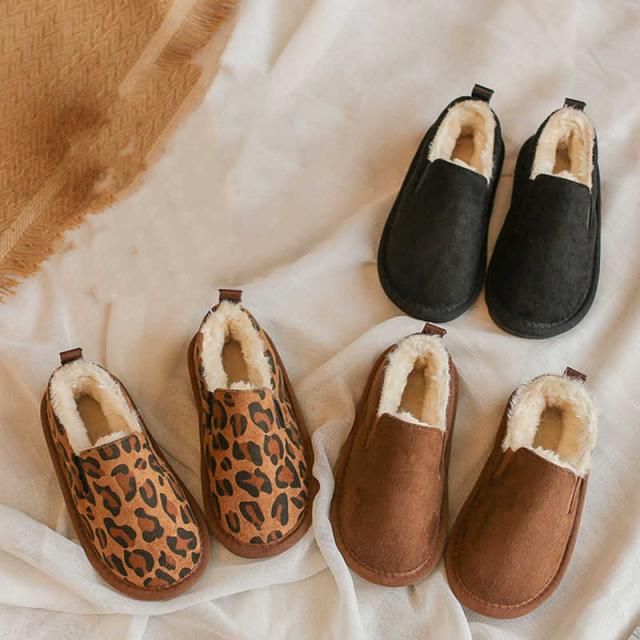 可愛いファーシューズ 裏起毛 モコモコ 子供靴 スノーブーツ スリッポンシューズ ムートン 女の子 男の子 豹柄 暖かい 靴 小学生 中学生 キッズ こども 卒園式 卒業式 入学式 防寒ブーツ