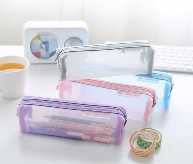 全7色 ペンケース クリア ポーチ 大容量 小物入れ 透明 メッシュ 筆箱 無地 入学祝い 小学生 中学生 文房具 筆入れ 小物入れ きれいめ レディース メンズ