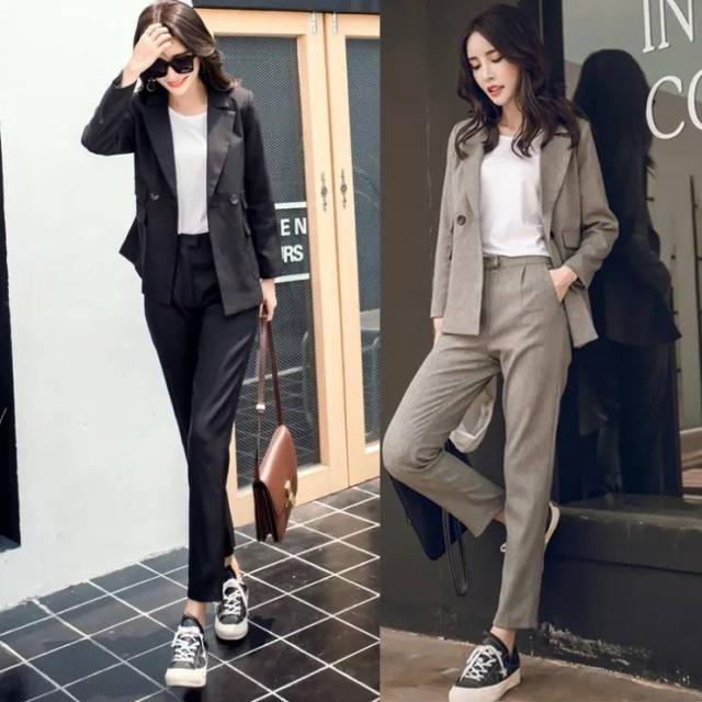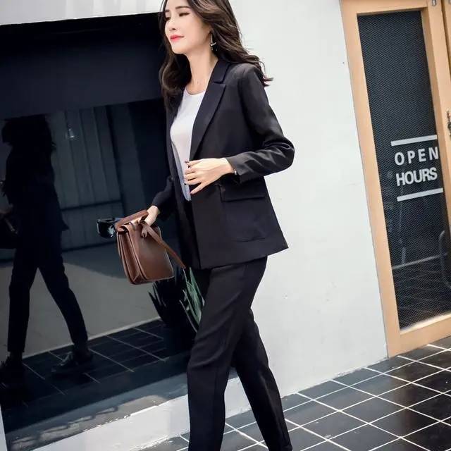 セットアップ レディース スーツ パンツスーツ ビジネススーツ フォーマルスーツ 2点セット ウエストゴム ロング丈パンツ 長袖 事務服 キャリア 通勤 就活 オフィス office 卒業式
