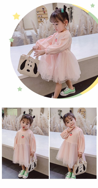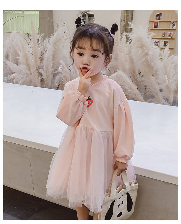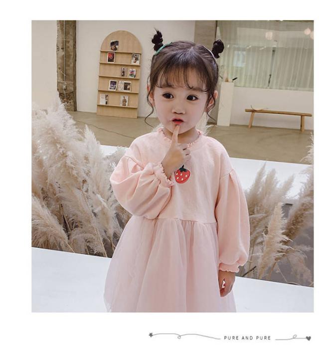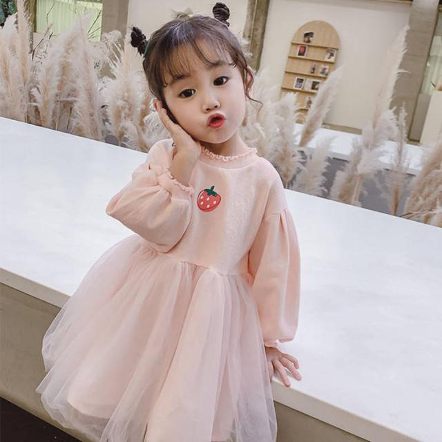 可愛いレース ワンピース キッズ ドレス 子供 長袖 チュール 女の子 子供服 ピンク イチゴ かわいい 秋 冬 春 入学式 発表会 結婚式 卒業式 きれいめ 通園 通学 誕生日 90cm 100cm 110cm 120cm 130cm