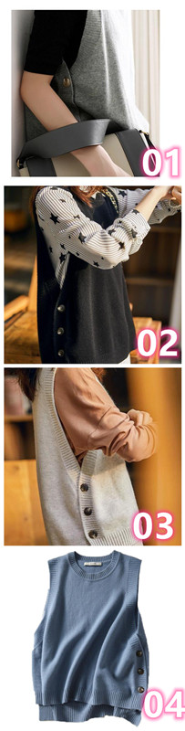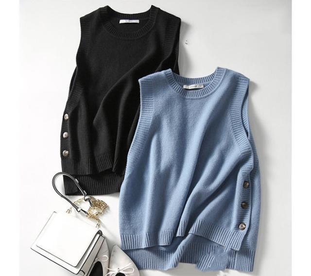 ニットベスト レディース セーター ベスト サイドボタン ニット トップス 送料無料 トップス ベストニット ラウンドネック ワイドシルエット プルオーバー シンプル ナチュラル ブラック ブルー ベージュ ぐれー 春 秋 冬