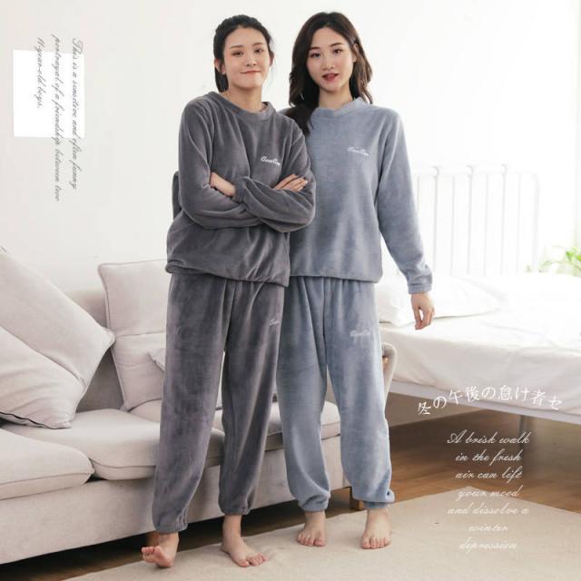 ルームウェア レディース もこもこ 上下セット 送料無料 パジャマ フリース マイクロファイバー 厚手 ゆったり 刺繍ロゴ 可愛い 冬 部屋着 長ズボン