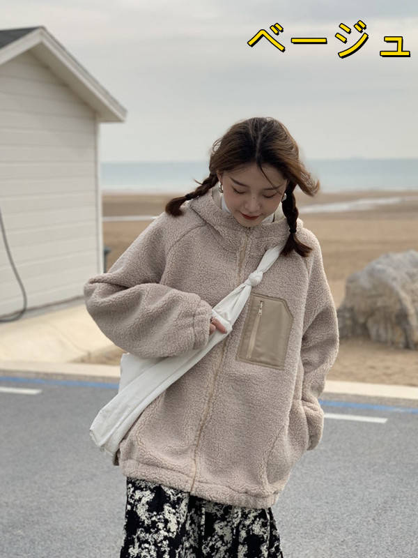ボアコート ボアパーカー レディース ボア コート ボアブルゾン パーカー アウター ボアアウター ブルゾン ボアジャケット 裏ボア フード付き ドロップショルダー ベージュ 黒 秋冬