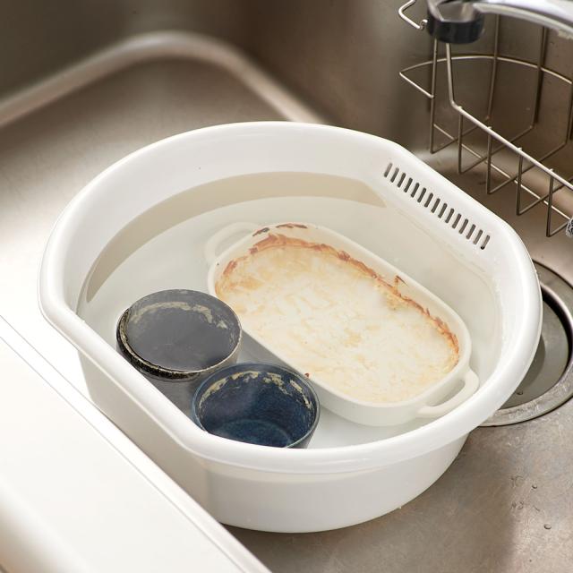「つけ置き洗い」にもお使いいただけます。 食洗機を使っていても、ギトギト油やミートソースが残ったお皿をそのまま入れるのには抵抗が・・ と、予洗いをされている方も多いのでは? | 使い方
