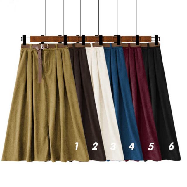 スカート ロングスカート レディース 送料無料 コーデュロイ 秋冬 暖かい 快適 ベルト付き ストレッチ 30代 40代 大人 カジュアル