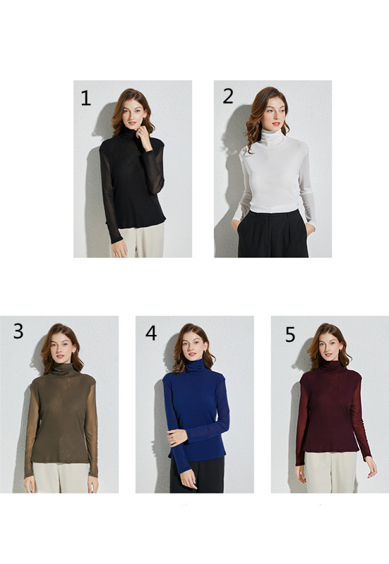全5色×5サイズ!透け袖 無地tシャツ レディースインナー ハイネックtシャツ インナー tシャツ トップス 薄手 ハイネック フィット 秋新作 おしゃれ 女性