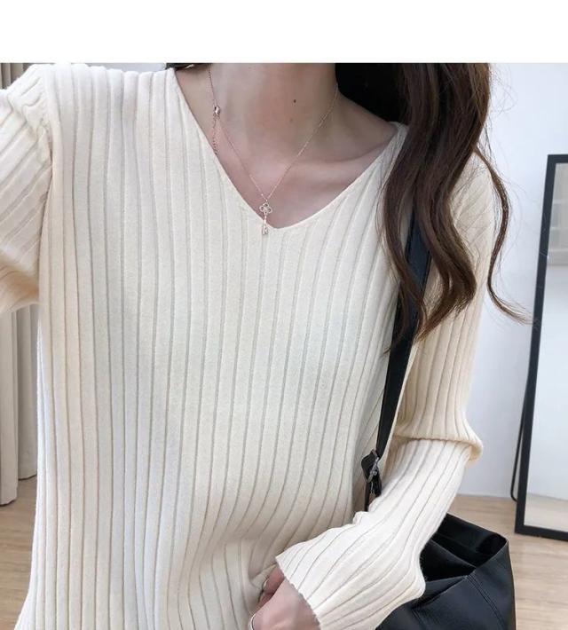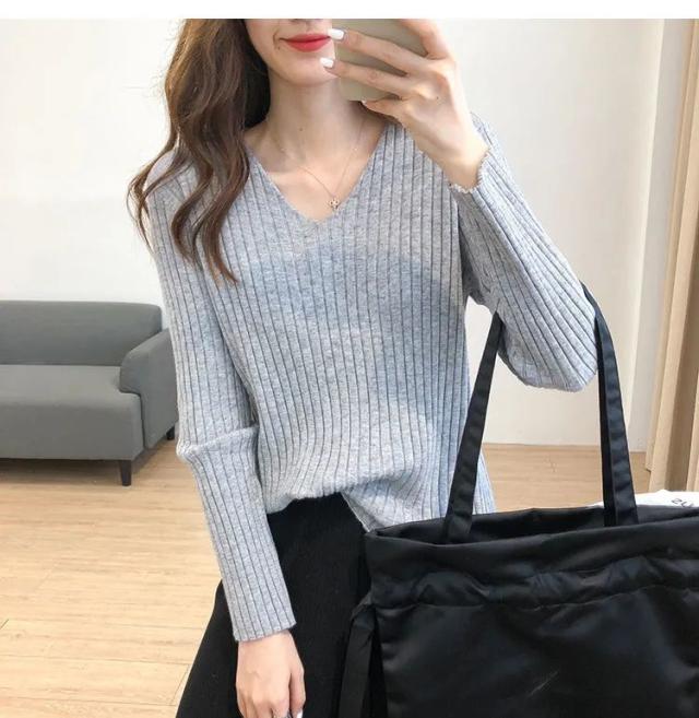 全10色!リブニット Vネックニット Vネックセーター レディース ニットセーター ニット セーター Vネック プルオーバー ニットトップス 秋冬 シンプル 無地 リブ ゆったり