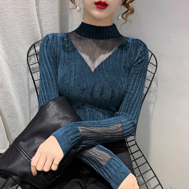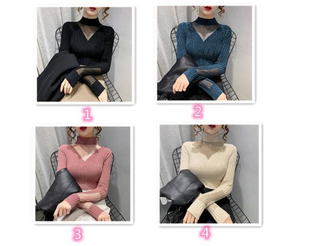 チュールレース ニットトップス レディース ハイネックニット ニット セーター 秋冬 インナー ハイネック シースルーニット フェミニン セクシー 女性