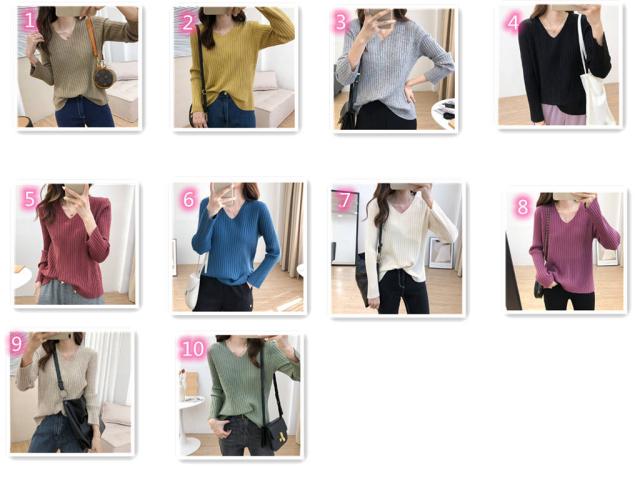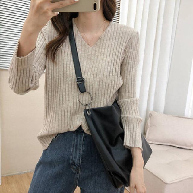 全10色!リブニット Vネックニット ニットセーター Vネックセーター レディース ニット セーター Vネック プルオーバー ニットトップス 秋冬 シンプル 無地 リブ ゆったり