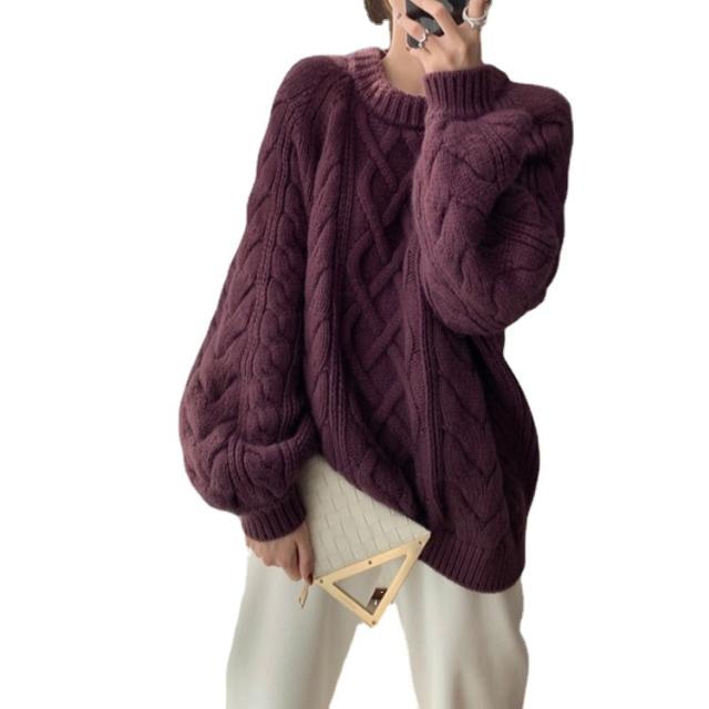 ケーブルニット レディース ニット セーター ロングニット ロングセーター ケーブル編み ラウンドネック 大きサイズ ゆったり 厚手 秋冬 プルオーバー カジュアル