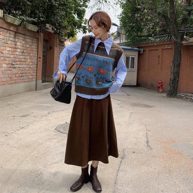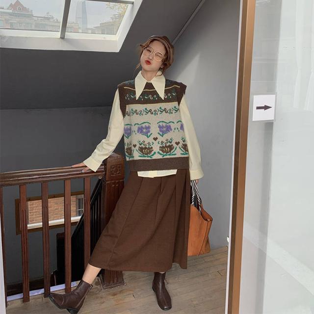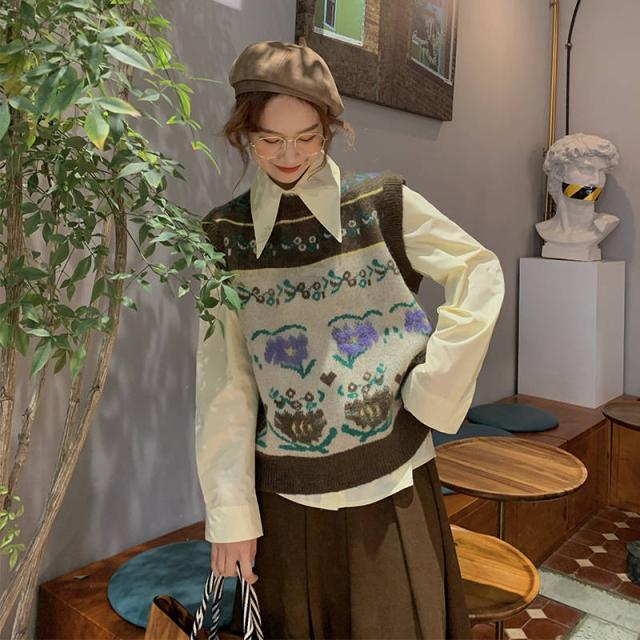 ニットベスト ラウンドネック ノースリーブニット レディース ニットトップス 袖なし ラウンドネックニット プルオーバー ニット ベスト 森ガール カジュアル