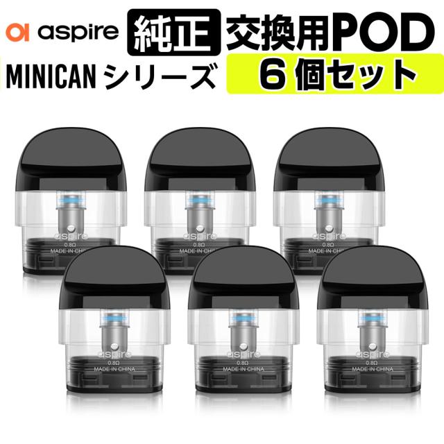 ASPIRE minican シリーズ 交換用 ポッド POD カートリッジ 0.8Ω 6個セット アスパイア ミニカン POD カートリッジ 純正 コイル 電子タバコ ベイプ VAPE