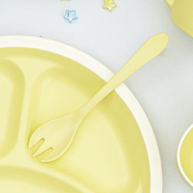 先端がフォークのように割れたスプーンです。食べ物を刺したりすくったりが可能なので、まだお箸が使えない小さなお子様のお食事におすすめです。