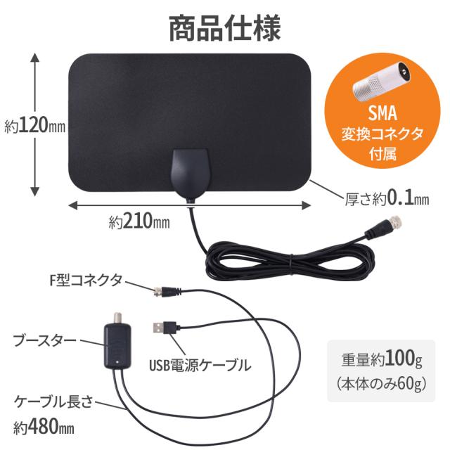 アウトドア 車 SMA変換コネクタ付き 受信ブースター USB 簡単設置 HD SMA変換コネクタ コネクタ ブースター 増幅器 コンパクト 軽量 ブラック 黒 防水 防水仕様