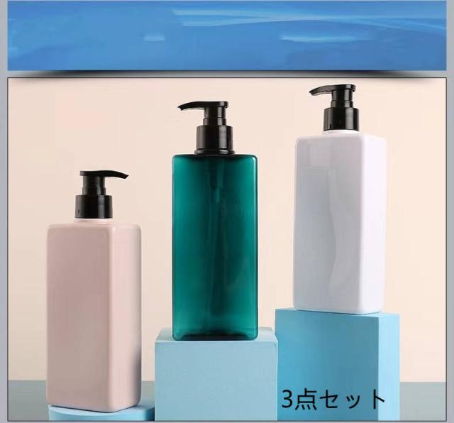 シャンプーボトル ボディーソープ コンディショナー おしゃれ 丈夫 広口 400ml 大容量 シャンプー 収納 詰め替え容器セット(ホワイト ピンク グリーン)