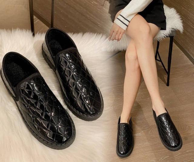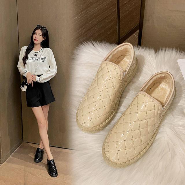 靴 裏起毛 ローファー レディース ぺたんこ 秋 冬 レディースシューズ フラット 歩きやすい 防水 暖かい かわいい キルティング ベージュ ブラック