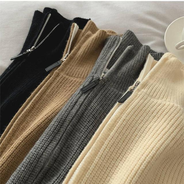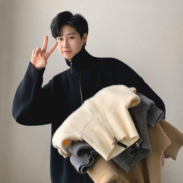 ニットジャケット メンズ ジャケット 秋冬 コート セーター ハイネック ジッパー カーディガン 暖かい オフホワイト ブラック グレー ベージュ M-2XL かっこいい 通学 通勤