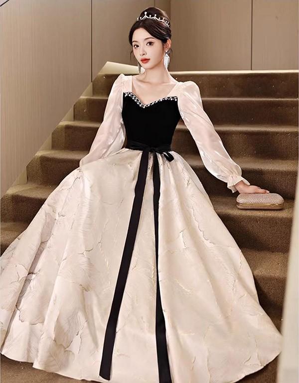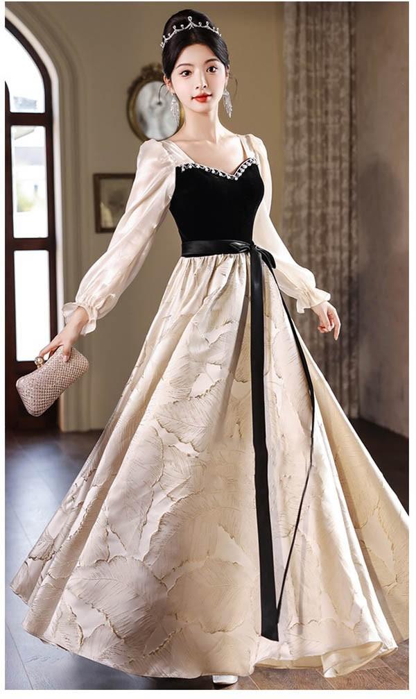 【商品名】ドレス 大人 ピアノ 発表会 ロング丈 ぽっちゃり 大きいサイズ イブニングドレス 演奏会 ピアノ発表会 袖付き ワンピース Aライン ステージドレス 二次会 女子会 成人式 パーティードレス 大人可愛い bg162zezed7