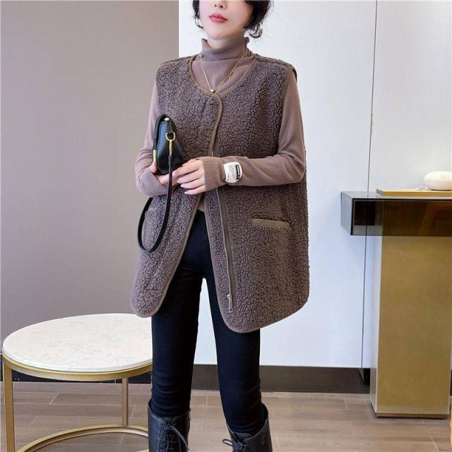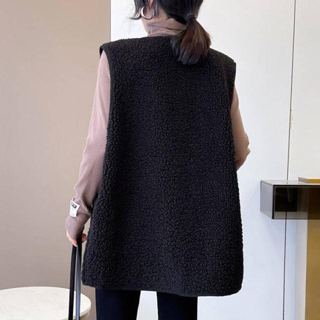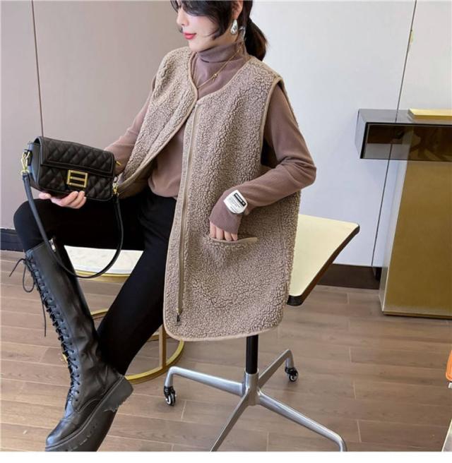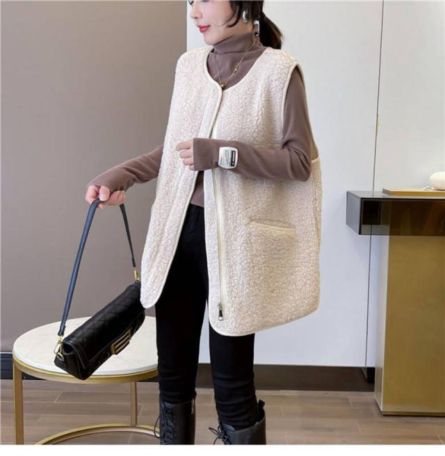 全4色 ベスト ボアベスト ボア レディース もこもこ 秋冬 前開き アウター 保温 ファスナー式 ポケット付き ムートン トレンド あったか トップス ジレ ゆったり 大きいサイズ ルームウェア カジュアル