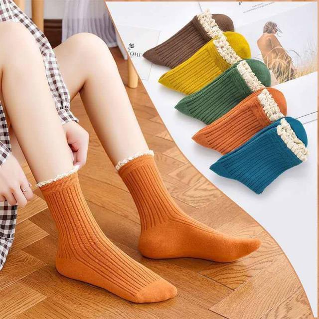 レディースカラーソックス 靴下 5足セット 暖かい 防寒対策 秋冬 フリル 可愛い ミドルソックス 冷え取り 防寒 足冷え ハイソックス 女の子 通気性 柔らかい 保温性 通常着