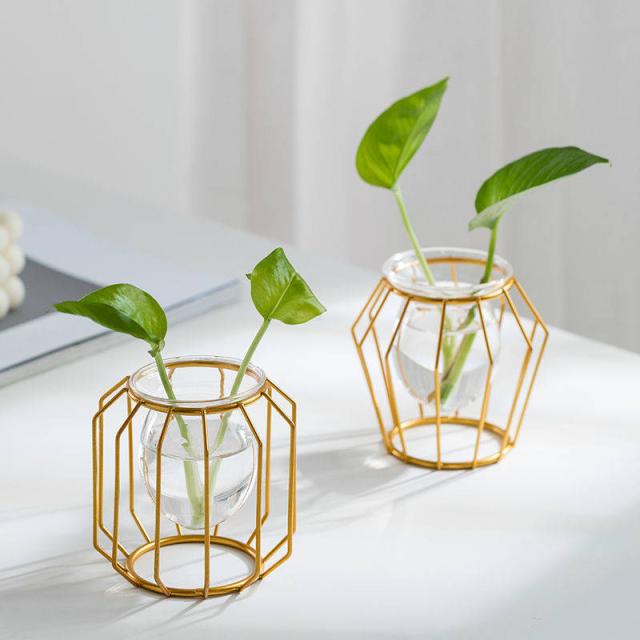 花瓶 北欧 フラワーベース ワイヤ インテリア 雑貨 ゴールド アイアン ガラス 試験管 おしゃれ かわいい シンプル