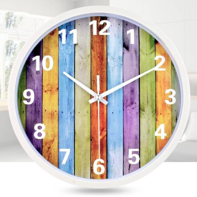 ウォールクロック 時計 壁掛け おしゃれ かわいい アンティークウッド ストライプ 木目調