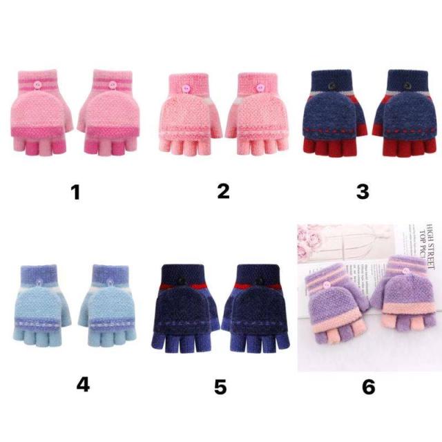 手袋 ニット手袋 ミトン 指切り手袋 指なし 子ども 子供 キッズ 送料無料 5-12歳 男の子 女の子 バイカラー 厚手 防風 防寒 暖かい あったか アウトドア 秋冬新作