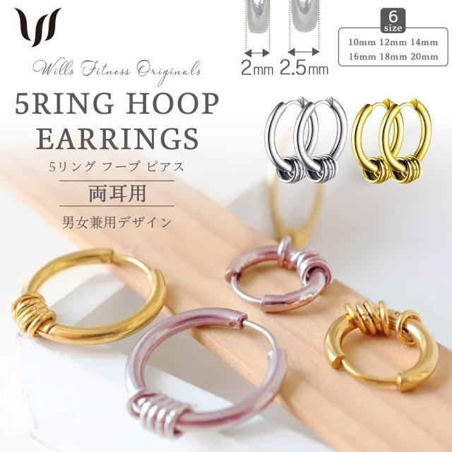フープピアス メンズ ピアス レディース ピアス ユニセックス 両耳用 シルバー ゴールド 定番 フープ ピアス 5連 リング イヤリング 2個 セット WILLS FITNESS ウィルズフィットネス アクセサリー プレゼント 贈り物 ペア お揃い 金属アレルギー ユ00582
