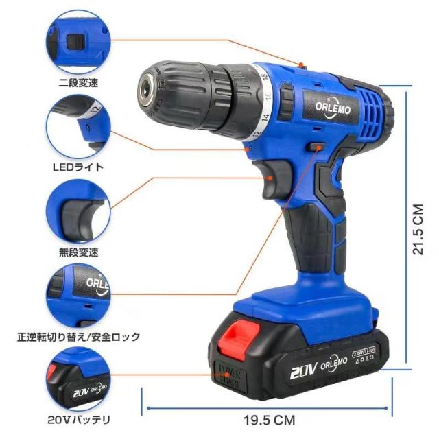 【LEDライト&無段変速】LED照明ライト付き、ドリル使用時に、ライトが点灯して、暗くてネジ穴が見にくい場所でも作業が簡単になります。無段変機能が搭載でスイッチの引き具合で作業条件や材料に合わせた切断速度に調整できます。