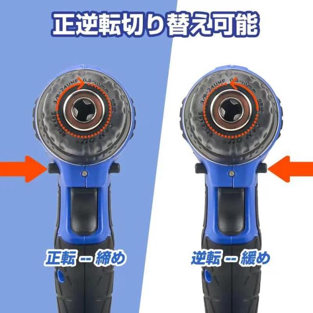 【正逆転ワンタッチ切り替え】時計回り/反時計回りを切り替えるスイッチがあって、ネジを締めると緩めるの作業がとても簡単に行えます。中央にセットすればロックされ、動かなくなります。キーレスチャックは、簡単にチャックを開閉する事ができ、ビットを簡単に取替えることが出来ます。