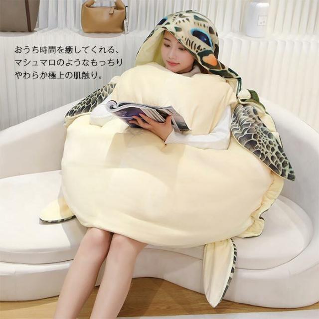 ぬいぐるみ カメ 海亀 ウミガメ 着用可能 亀クッション 亀甲服 コスプレ仮装 動物ぬいぐるみ 亀着ぐるみ抱き枕 仮装 動物 着ぐるみ おもしろ雑貨 100cm