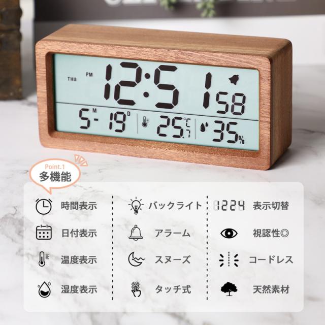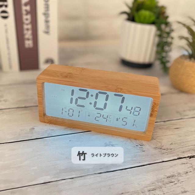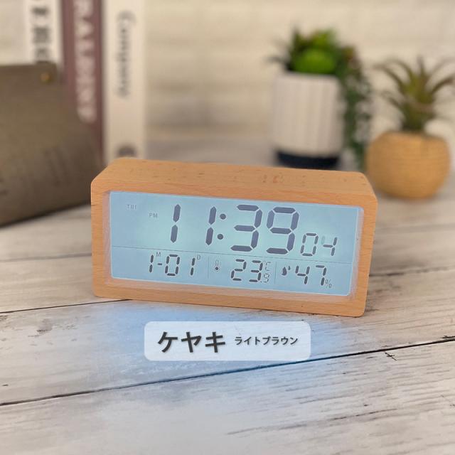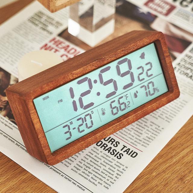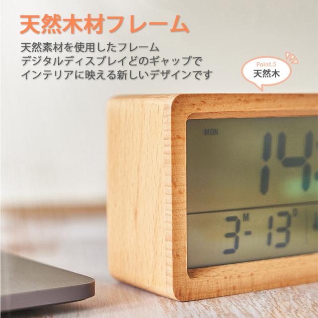 目覚まし時計 デジタル おしゃれ 置き時計 北欧 led コードレス 置時計 温度計 カレンダー時計 デジタル時計 卓上 木目調 プレゼント