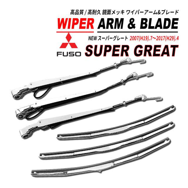 NEW スーパーグレート メッキ ワイパーアーム ・ ワイパーブレード セット 鏡面 2007(H19).7〜2017(H29).4